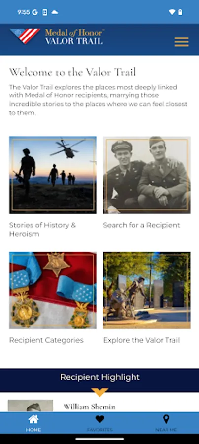 Download the Medal of Honor Valor Trail™ App today and experience the courage, sacrifice, and heroism that define America’s Medal of Honor recipients.
