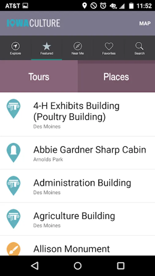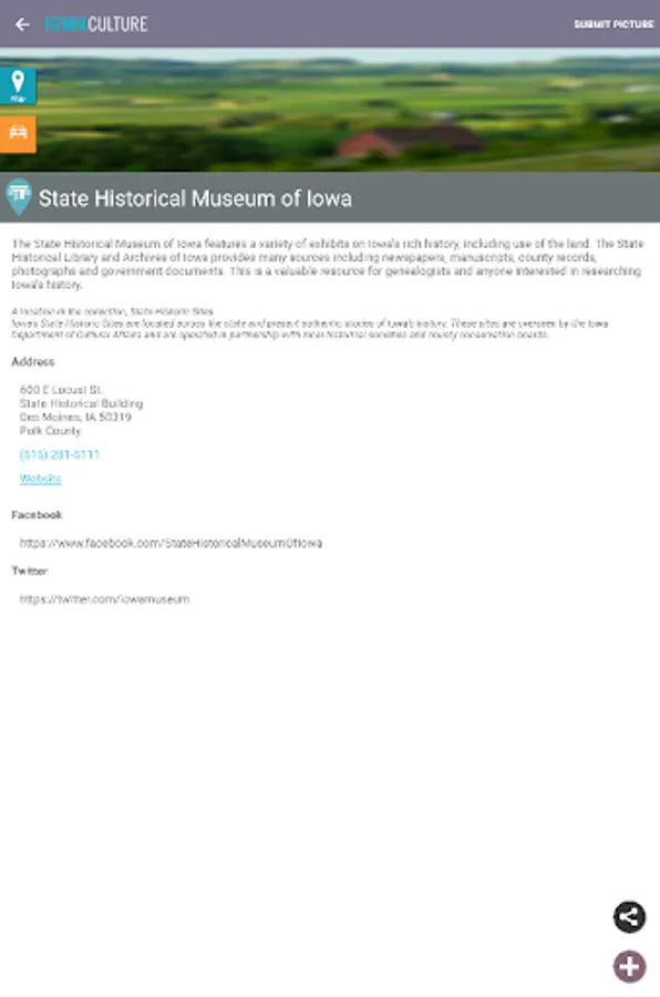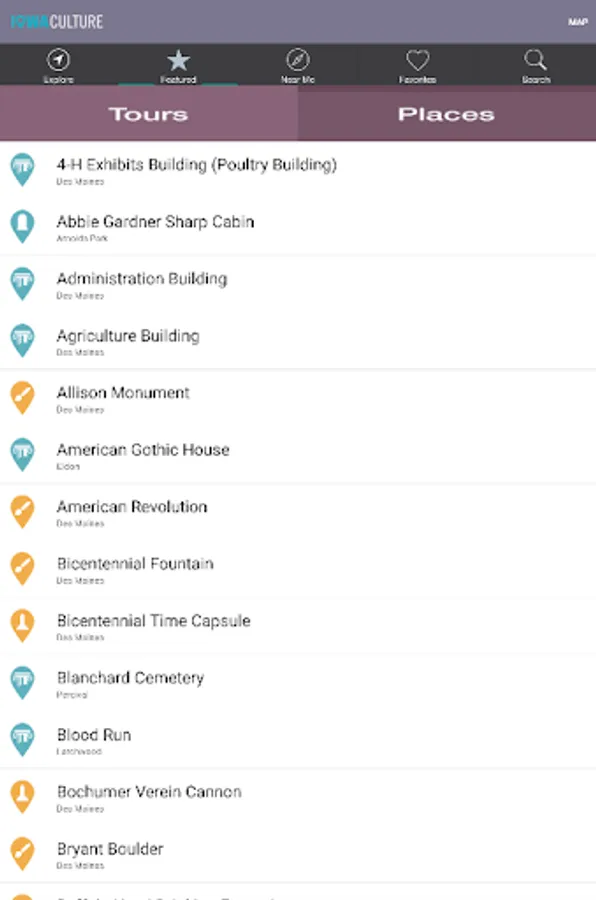 Iowa Culture is a fun and interactive way to discover arts, history, science and nature in Iowa. Explore places by category and location, browse featured tours and save favorites to create your own adventure. The possibilities are endless with mapping tools to direct you to thousands of sites across 99 counties covering 56,272 square miles.