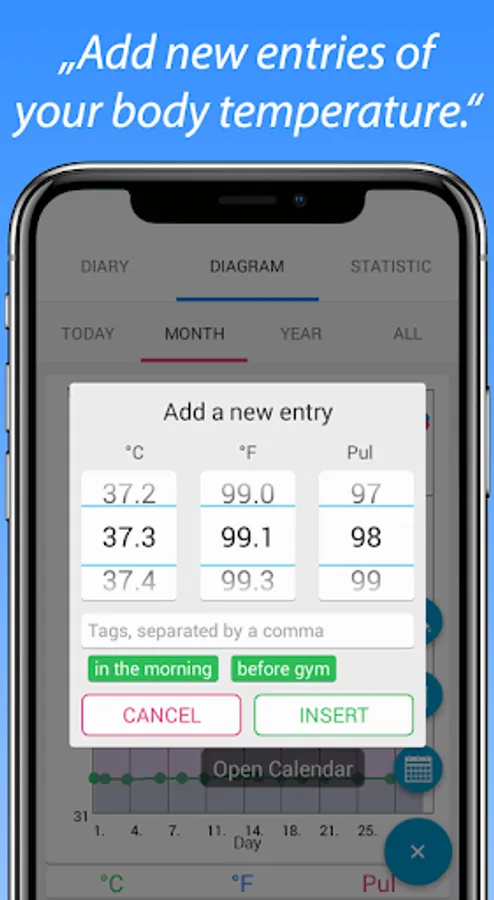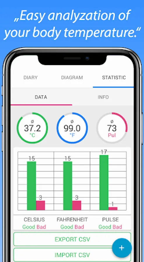 This Body Temperature Fever Thermometer Diary App is created to provide you a great diary for your body temperature and pulse and does not measure your body temperature and pulse. All result values are random generated!