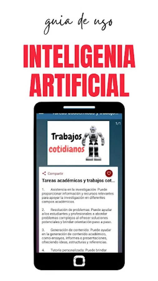 Welcome to the most complete guide on the use of Artificial Intelligence (AI) in chats. This app will take you on a fascinating journey through the world of AI and teach you how to interact with it to get amazing and relevant images from simple descriptions. With our artificial intelligence guide app, you will discover how to ask effective questions and explore exciting applications in different areas of knowledge. Get ready for a transformative experience!