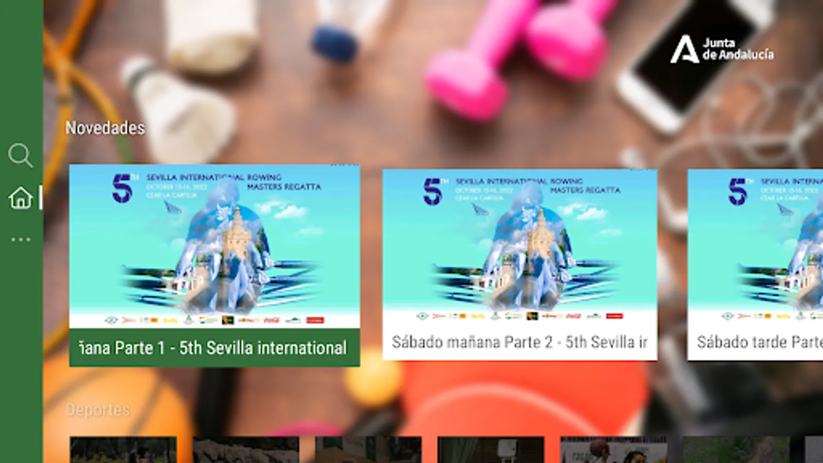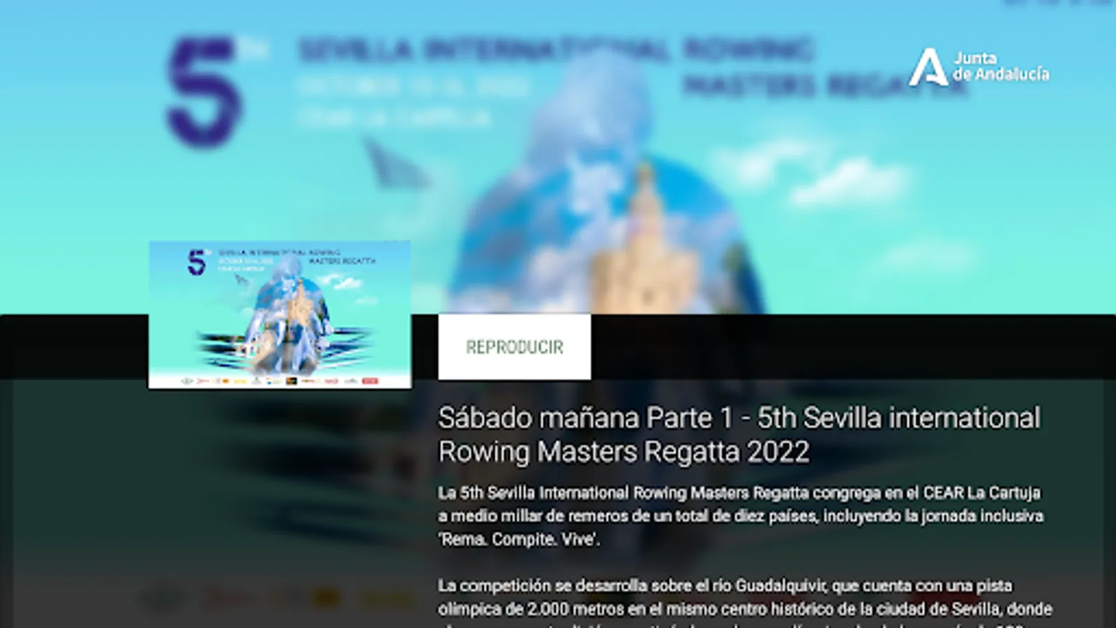 The Ministry of Education and Sports of the Andalusian Government, makes this audiovisual platform available to all citizens and agents of the Andalusian Sports System, where you can enjoy different content related to sport and its various resources (athletes, facilities, events ...), from the great events that take place in our land, as well as grassroots competitions.