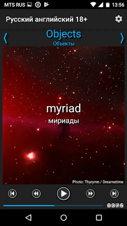 Russian-English - motivating application for fans of English. We offer you a selection of more than 5000 thousand. Recognizable English words. Here you will find internationalism borrowing ambiguous words and homonyms, "false friends" and much more. British and American pronunciations voiced by native speaking actors. Excellent pictures attached.