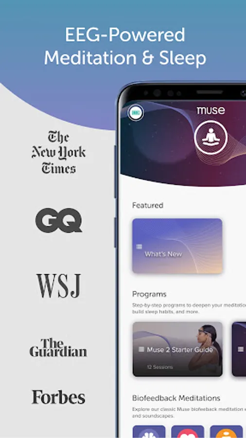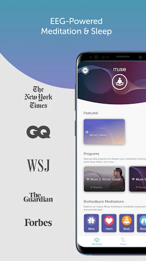 The free Muse Meditation app works alone or together with all Muse: The Brain Sensing Headband devices. Once paired with your Muse device, you’ll get access to Muse’s Meditation and Sleep Experiences that give you real-time audio feedback about your brain and body.