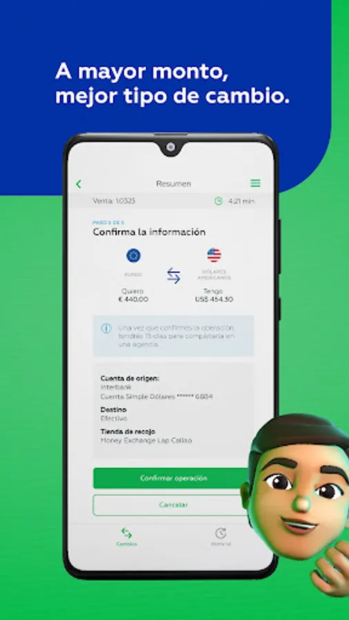 Money Exchange Interbank is an Interbank application that provides the service of buying and selling coins to customers and non-customers of the bank.