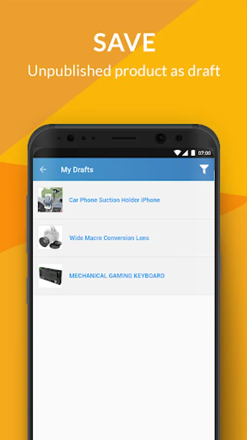 Create and edit your products conveniently by uploading & updating product photos directly from your camera or gallery