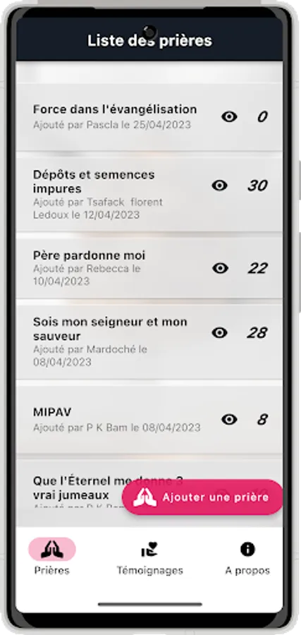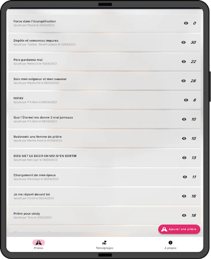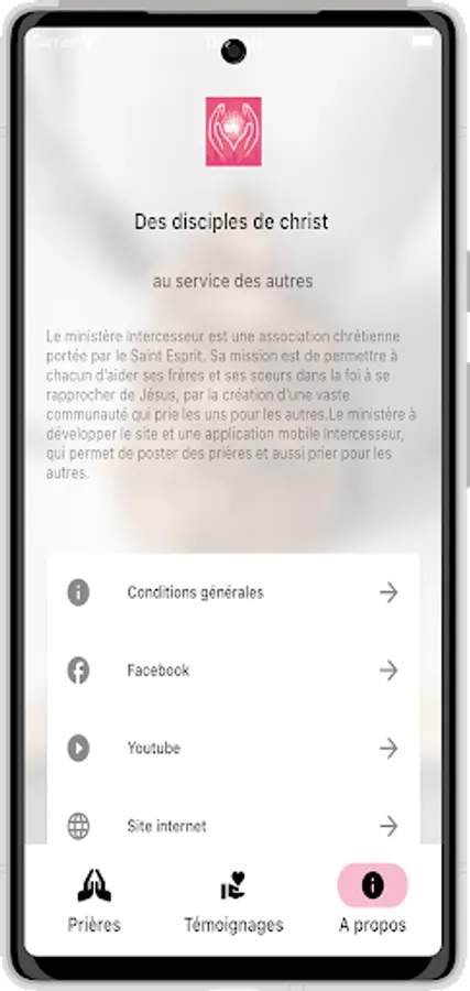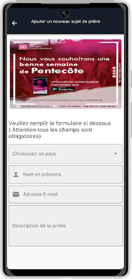 The Intercessor application was born in order to respond to a problem linked to the lack of gathering of Christians to raise common prayers to the father. Now it is possible to meet to pray in a group, to share testimonies as well as to post prayer subjects to other people and all this via the intercessor mobile application.