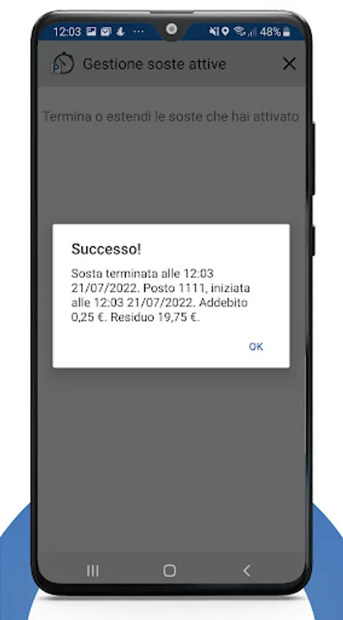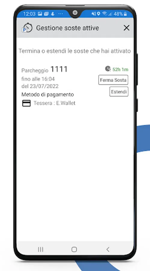 7. Gestisci le tue soste dalla sezione delle soste attive, per estenderle o terminarle.