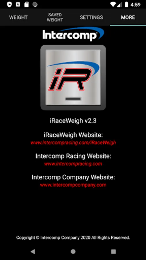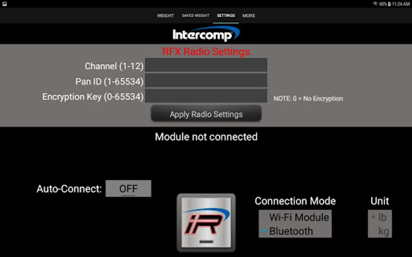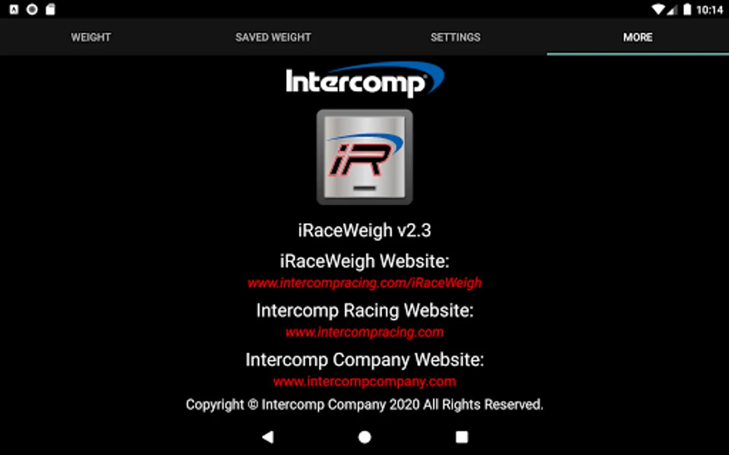Intercomp’s iRaceWeigh™ is designed to work with the extensive line of Intercomp RFX™ Wireless Scale Systems, and Cabled Billet Scale Systems that include RS232 output. iRaceWeigh™ communicates with the scales enabling users to view and save weights and setup data, and export all saved data to a spreadsheet via email (.csv file). iRaceWeigh™ can be used with an Intercomp Wi-Fi Module to receive scale weights. Bluetooth-enabled mobile devices can use Bluetooth mode to connect to all RFX™ Wireless Indicators produced after Jan. 1, 2020. Sessions can also be created by manually entering corner weights.