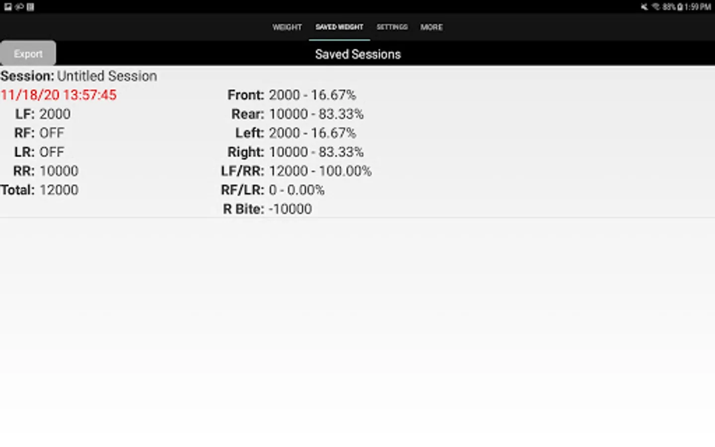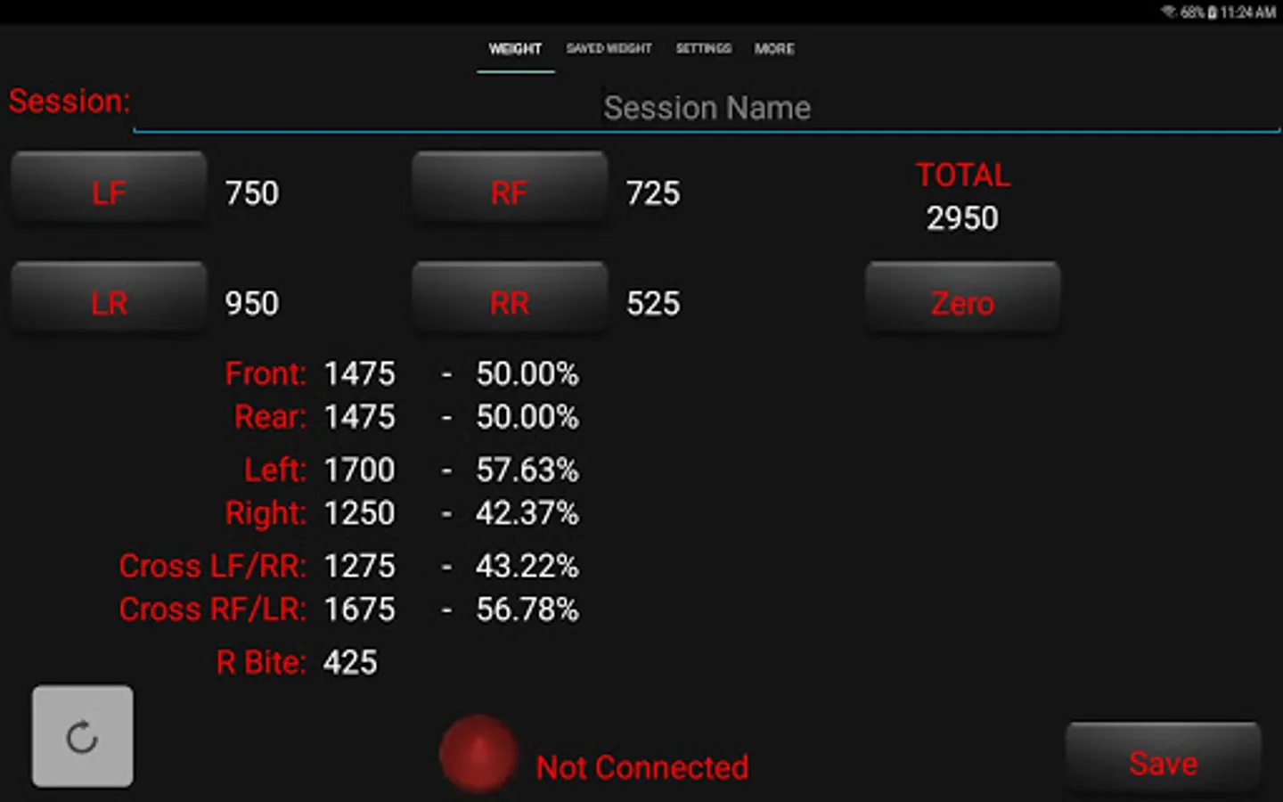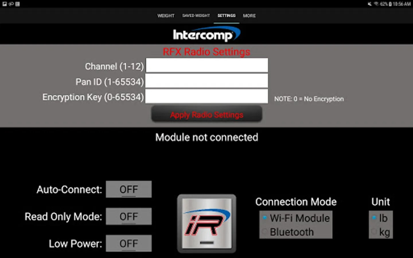 Intercomp’s iRaceWeigh™ is designed to work with the extensive line of Intercomp RFX™ Wireless Scale Systems, and Cabled Billet Scale Systems that include RS232 output. iRaceWeigh™ communicates with the scales enabling users to view and save weights and setup data, and export all saved data to a spreadsheet via email (.csv file). iRaceWeigh™ can be used with an Intercomp Wi-Fi Module to receive scale weights. Bluetooth-enabled mobile devices can use Bluetooth mode to connect to all RFX™ Wireless Indicators produced after Jan. 1, 2020. Sessions can also be created by manually entering corner weights.