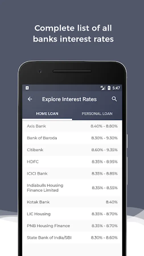 Explore Interest Rate: Interested in catching the latest interest rate before applying for a loan in your favorite bank? Well, what, if you would be able to explore the whole list of interest rates offered by various banks at one place? Interest Rate Comparison & EMI Calculator App makes that happen for you! With this App, you can easily browse the updated interest rates of enormous banks available right at your fingertips. Whether it's Home Loan or Personal Loan, the App, depending on your need, showcases the latest interest rates of different banks without any hassle. It is easy to check the interest rates at Interest Rate Comparison & EMI Calculator App as you just need to either click on a home loan or personal loan tab above. After doing that, a list of banks will come on your screen, letting you know which bank is offering a loan (personal/home loan) at which interest rate.