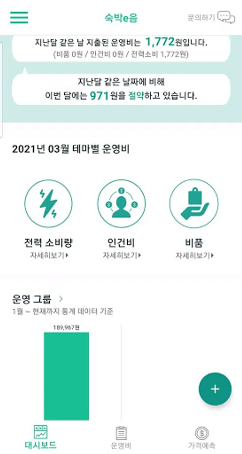 * Lodging Eum (Lodging e Eum) helps you to save by comparing your neighbor's operating costs by theme (power consumption/labor/equipment) with my operating costs.