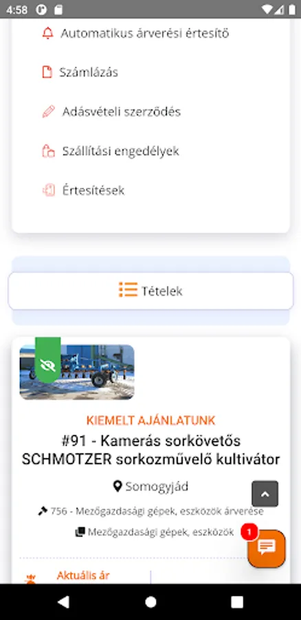 Information application of Intergavel Aukciószervező, Szolgáltató Kft. To its clients interested in auctions.