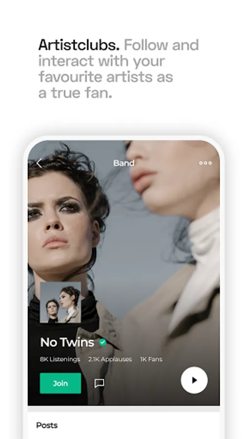 Clean feed with no ads or distractions, only updates and music from your favorite musicians. Listen to unlimited music, create a playlist of beloved tracks, search and share music with friends, browse music charts and discover trending music, enjoy latest new music releases, sync your music interaction experience between web and your phone.