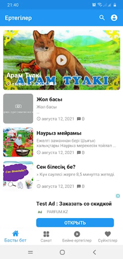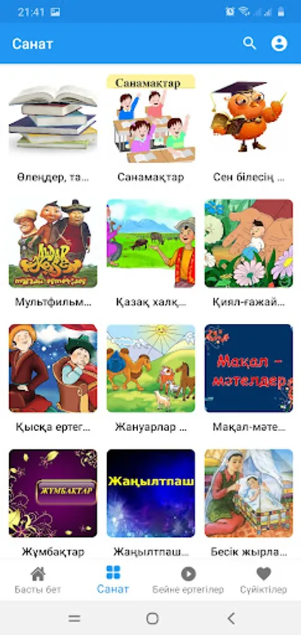 The appendix also contains: Poems, Counting, Did You Know ?, Cartoons, Tales of the Kazakh People, Fantasy Tales, Short Tales, Fairy Tales about Animals, Proverbs, Riddles.