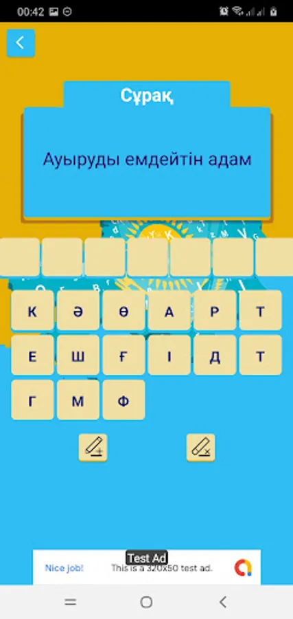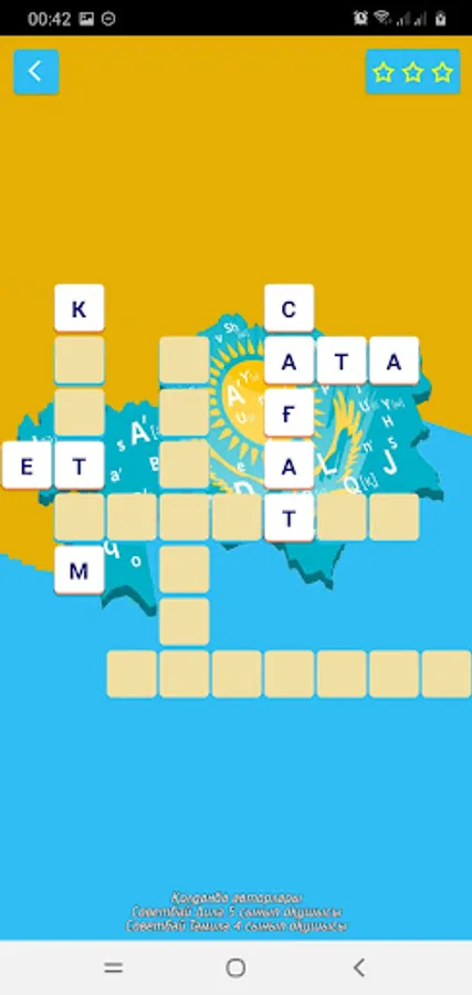 Crossword game in Kazakh. Have fun answering various questions! There are questions in the form of scanwords, namely geography, history and vocabulary.
