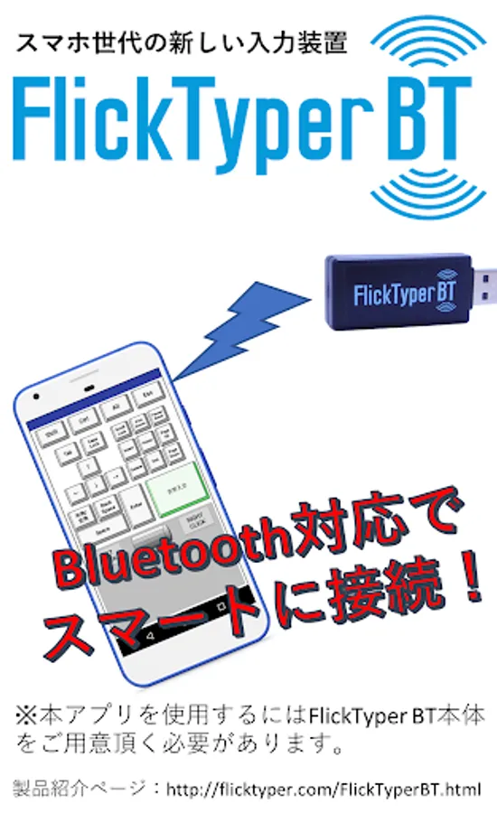 This is an application for FlickTyperBT, a Bluetooth compatible version of FlickTyper, a product that turns your smartphone into a computer keyboard.
