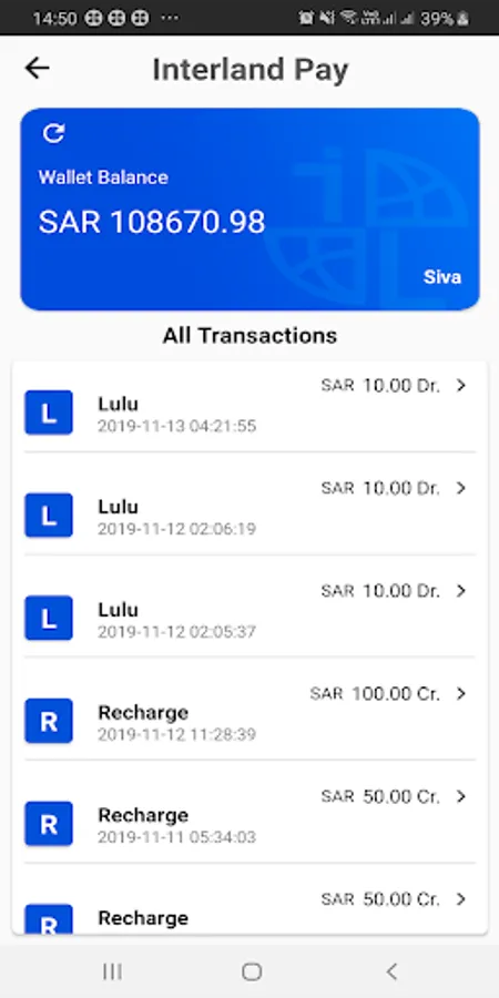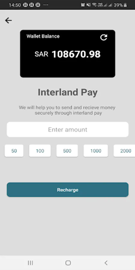 Interland Pay- The most comprehensive mobile wallet to Transfer Money and Shop Anywhere. Interland Pay can be used for shopping at all merchant shops which are partner with us in Kingdom of Saudi Arabia. You can even request for a physical cards from merchant shop and that can be used at that store. You can even send money securely to another friend's card.This is an unreleased app. It may be unstable.