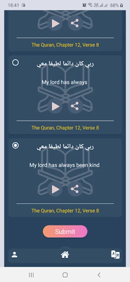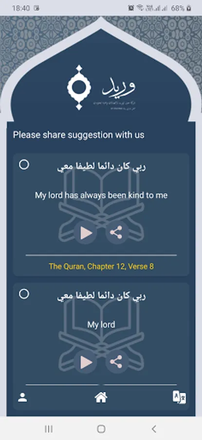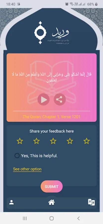 Tell us about you and how you feel. We will connect to you the right Holy Quran verse.