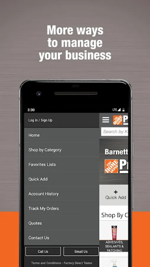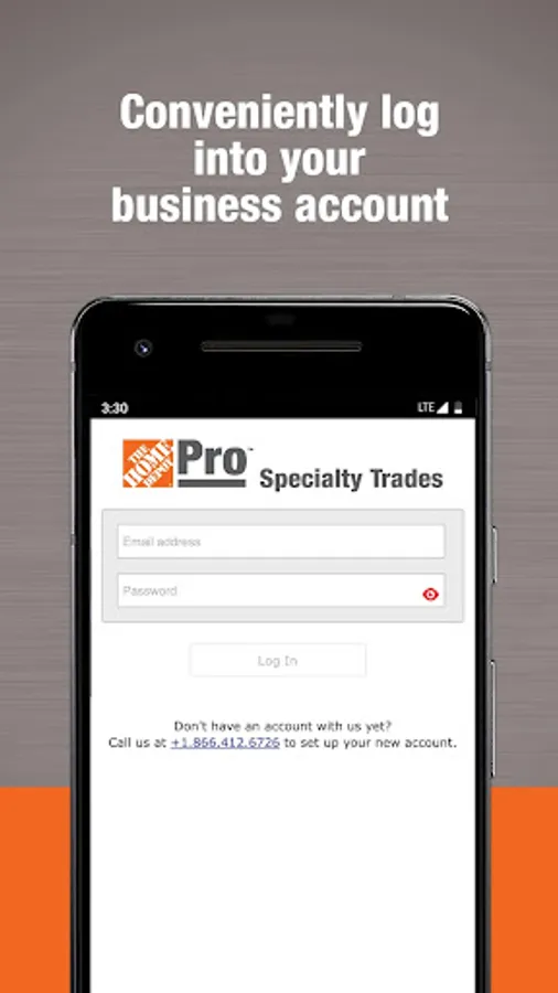 The Home Depot Pro Specialty Trades mobile app is designed to ensure you are able to quickly and easily order what you need to keep your business moving. Simply use your email address and password for your online Home Depot Pro Institutional account to get started. Don't have online access? Visit us at eBarnett.com from a desktop computer to register.