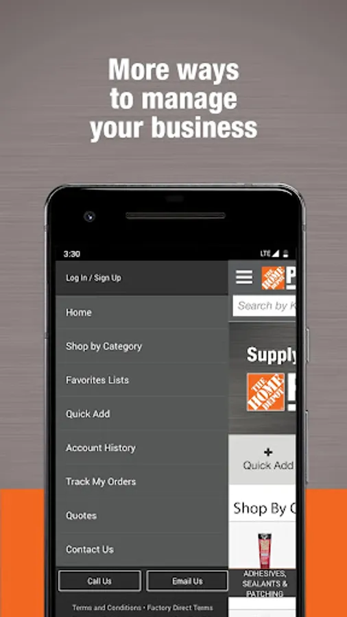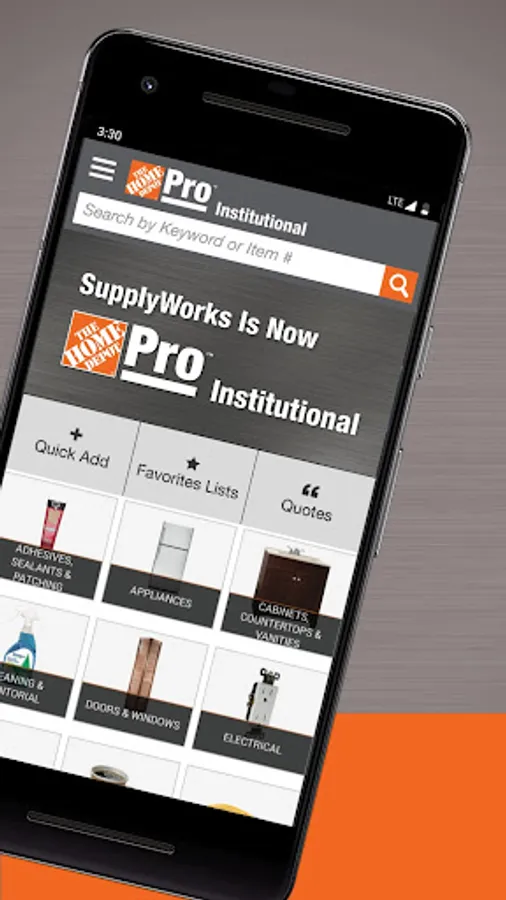 The Home Depot Pro Institutional app lets you purchase items from your saved favorites list or customized product offering, as well as create, manage and approve quotes on the go.