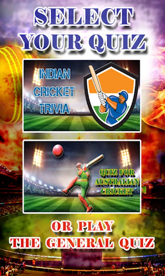 *Select from Indian Cricket, Australian Cricket or the general cricket quiz.