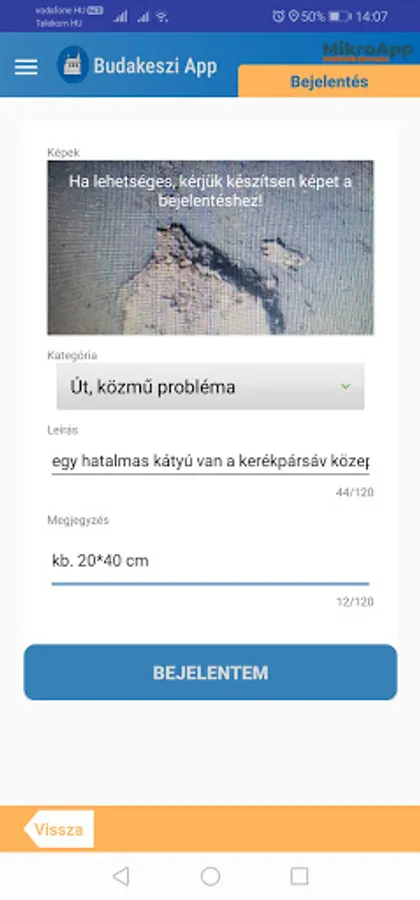 In addition, you can use the app to make photo reports - automatically with GPS coordinates - of problems you notice (e.g. street lighting, road, utility problem.). The employees of the Municipality are constantly monitoring the remarks and taking action on the solution!