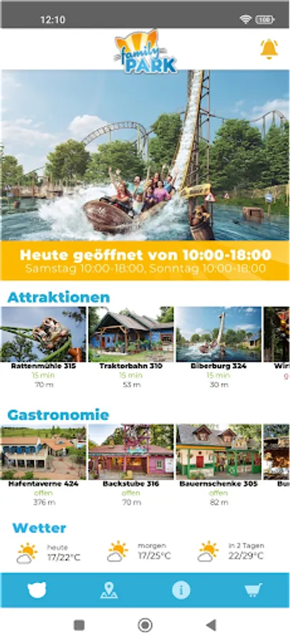 The app informs you about open or closed attractions and restaurants, shows you what waiting times you have to expect at the attractions & navigates you through the 14 hectare park area thanks to the interactive park map. In addition, you can check the current weather in the park at any time and will be informed about news via push notification (approval required).