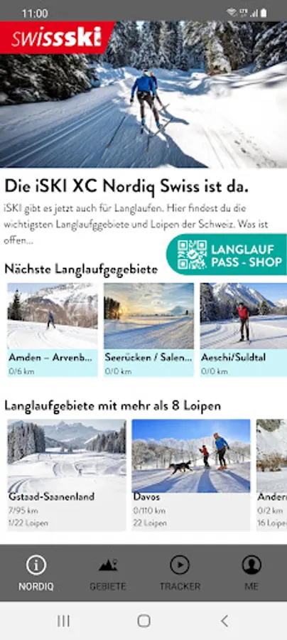 Available cross-country skiing areas in the iSKI Nordiq XC Swiss: e.g. Lenzerheide, Engelberg, Laax, Goms / Obergoms, Surses / Albula, Einsielden, Davos, Gstaad, ... and many more.