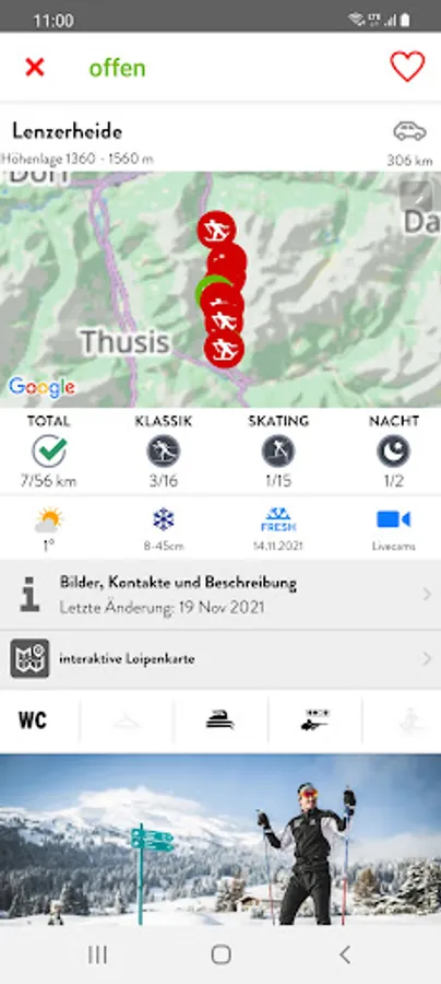 # Information on the infrastructure in the cross-country skiing area: toilets, skill parks, changing facilities, waxing and ...