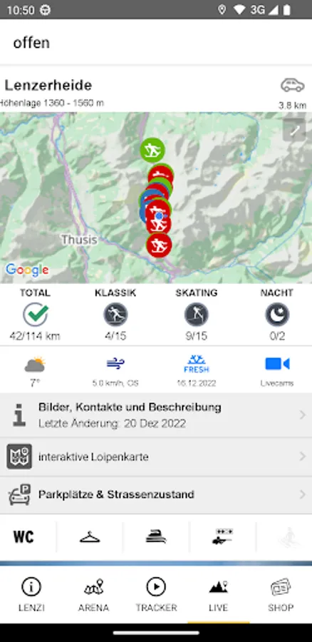 # Information on the infrastructure in the cross-country skiing area: toilets, skill parks, changing facilities, waxing and ...