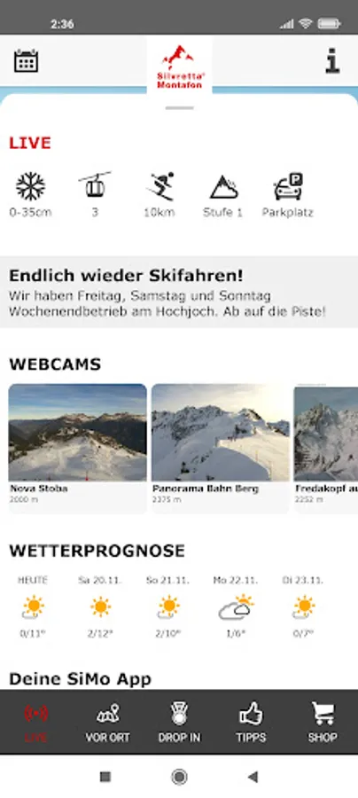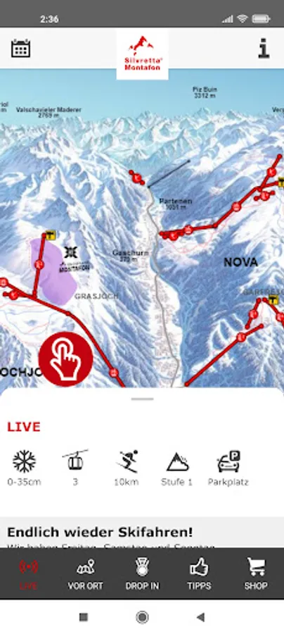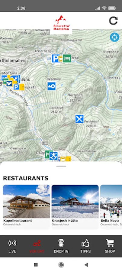 Navigate to your preferred valley station and search for parking spaces. Up on the mountain, you’re spoiled for choice: Want to be the first to test the latest sports equipment from Intersport, book a lesson at the Ski school or Freeride station or sit back and enjoy a tasty cappuccino? ON SITE can’t make the decision for you, but it can show you in real time which shops and restaurants are open and where to find just what you’re looking for. You will also find all manner of useful and interesting information here for your stay in the valley.