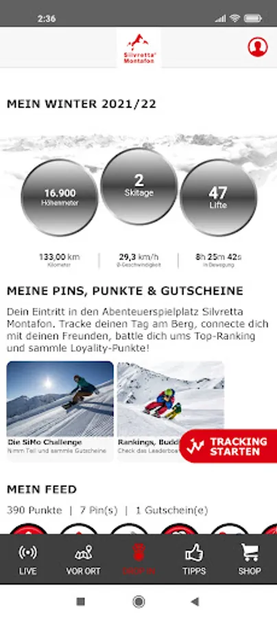 Your entry to the adventure playground that is Silvretta Montafon. Track your summit ascents, your mountain bike rides or your ski day on our 140 km of pistes. Connect with friends and battle for the top ranking. Who will cover the most kilometers on the pistes, who will climb the highest mountain? Collect pins and badges along the way, receive loyalty points and exchange them for vouchers in the app.