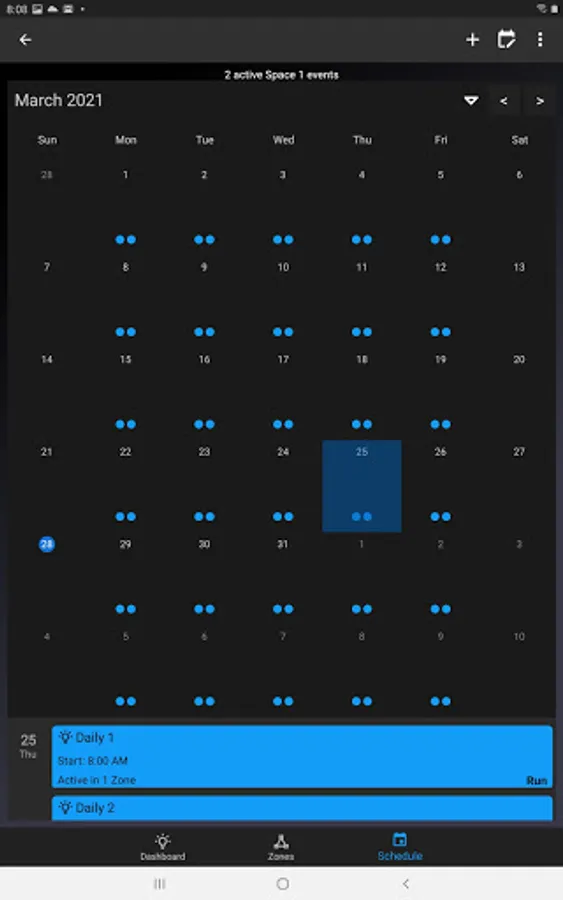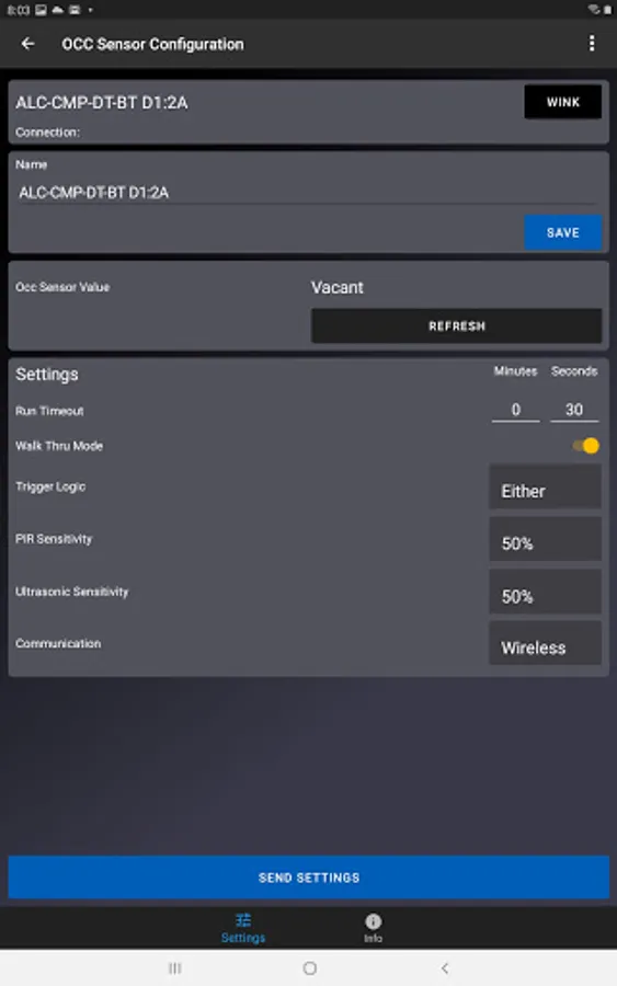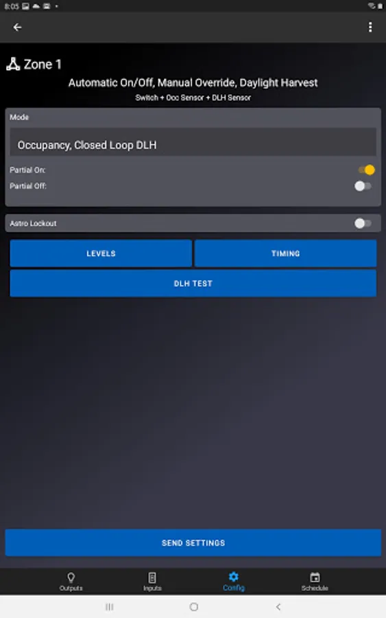 • Real-time Configuration – Use the app to adjust input settings (e.g., run level, fade time) and create time schedules for each ARISTA device. A helpful “blink” feature allows installers to quickly identify devices in the field and begin configuration.