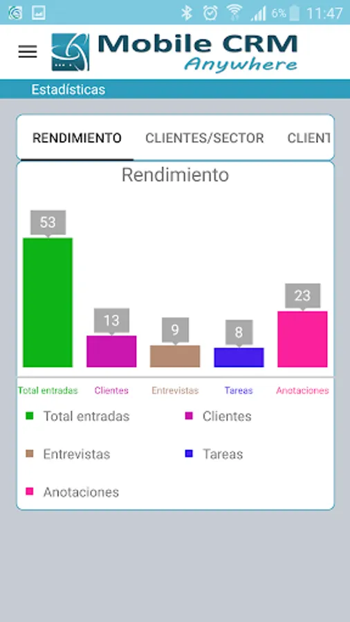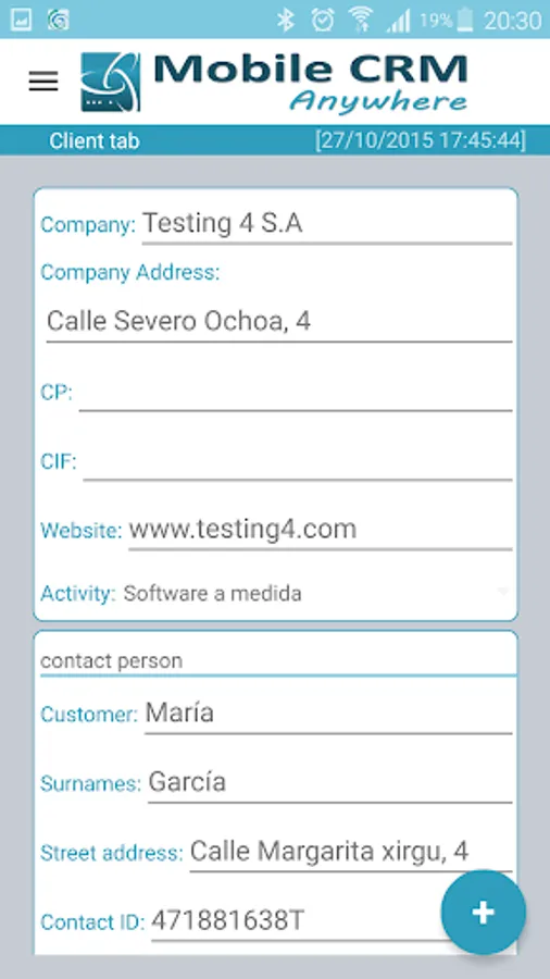 Mobile CRM Anywhere is a mobile application to get updated the business opportunities of your company in real time. Helps you to consult your customers’ data on the move, the logs of each communication with the client, interviews planning, tasks, products or services associated and all with a simple, intuitive and easy to use interface.