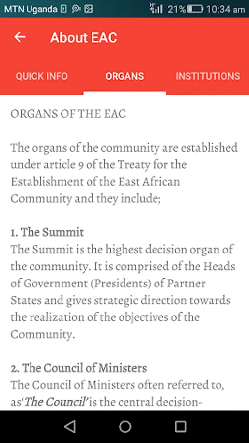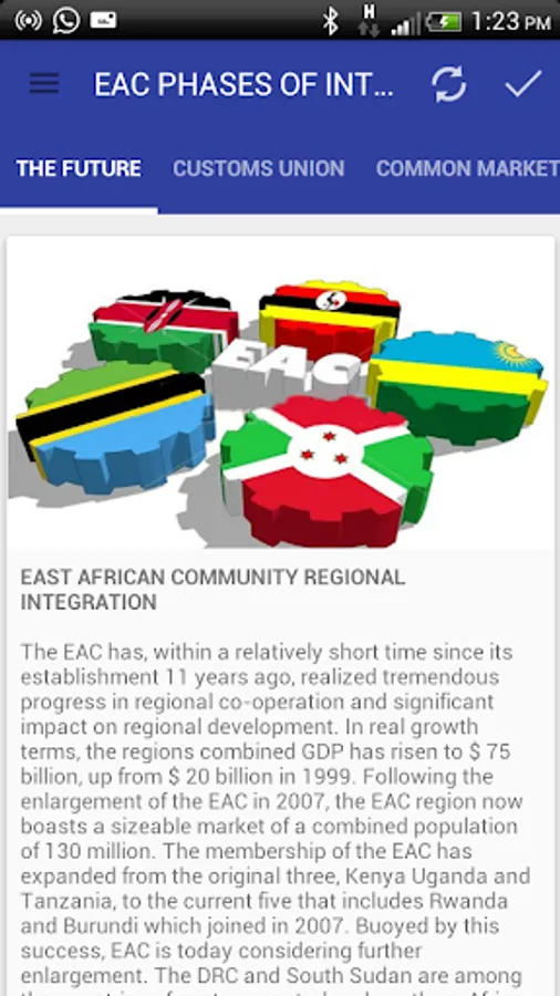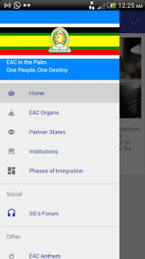 EAC in the Palm is a smart Android application designed to re-brand EAC on the social global network where accurate and timely updates about News, Reports and Events about the East African region are all sent to your smart phone device. Make sense to people centered integration of the East African Community by simply downloading this app now.