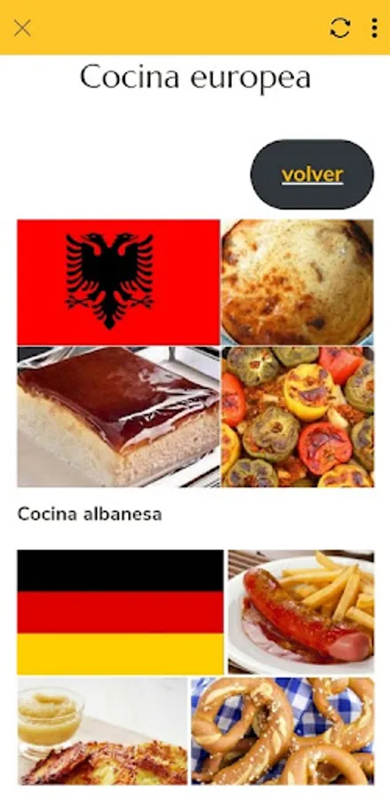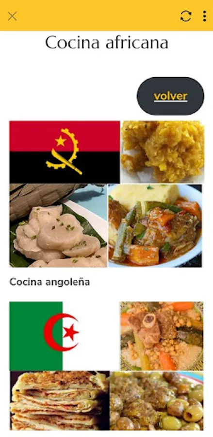 The application offers food recipes that are mainly classified into six sections: Asian cuisine, European cuisine, Middle Eastern cuisine, African cuisine, North American cuisine, South American cuisine) and each section contains lists of favorite foods in the country that belongs to this division .