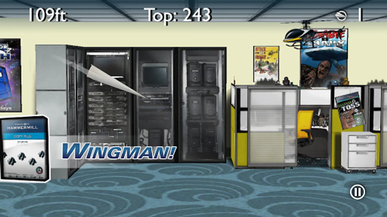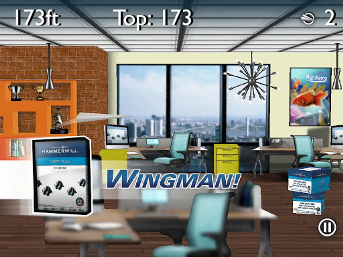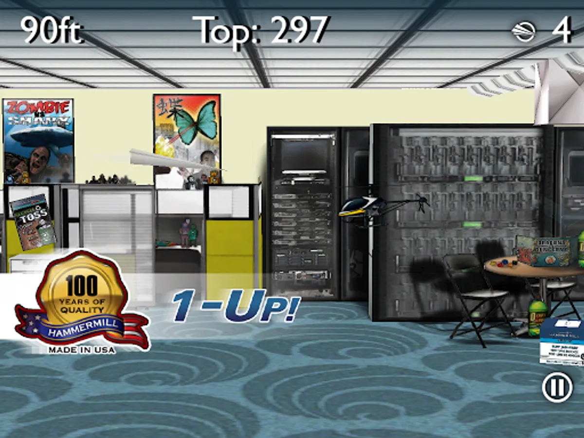 Guide your paper airplane across your office where many obstacles await! Pickup Hammermill powerups along the way to keep you from getting jammed up! Go the distance and unlock new trophies!