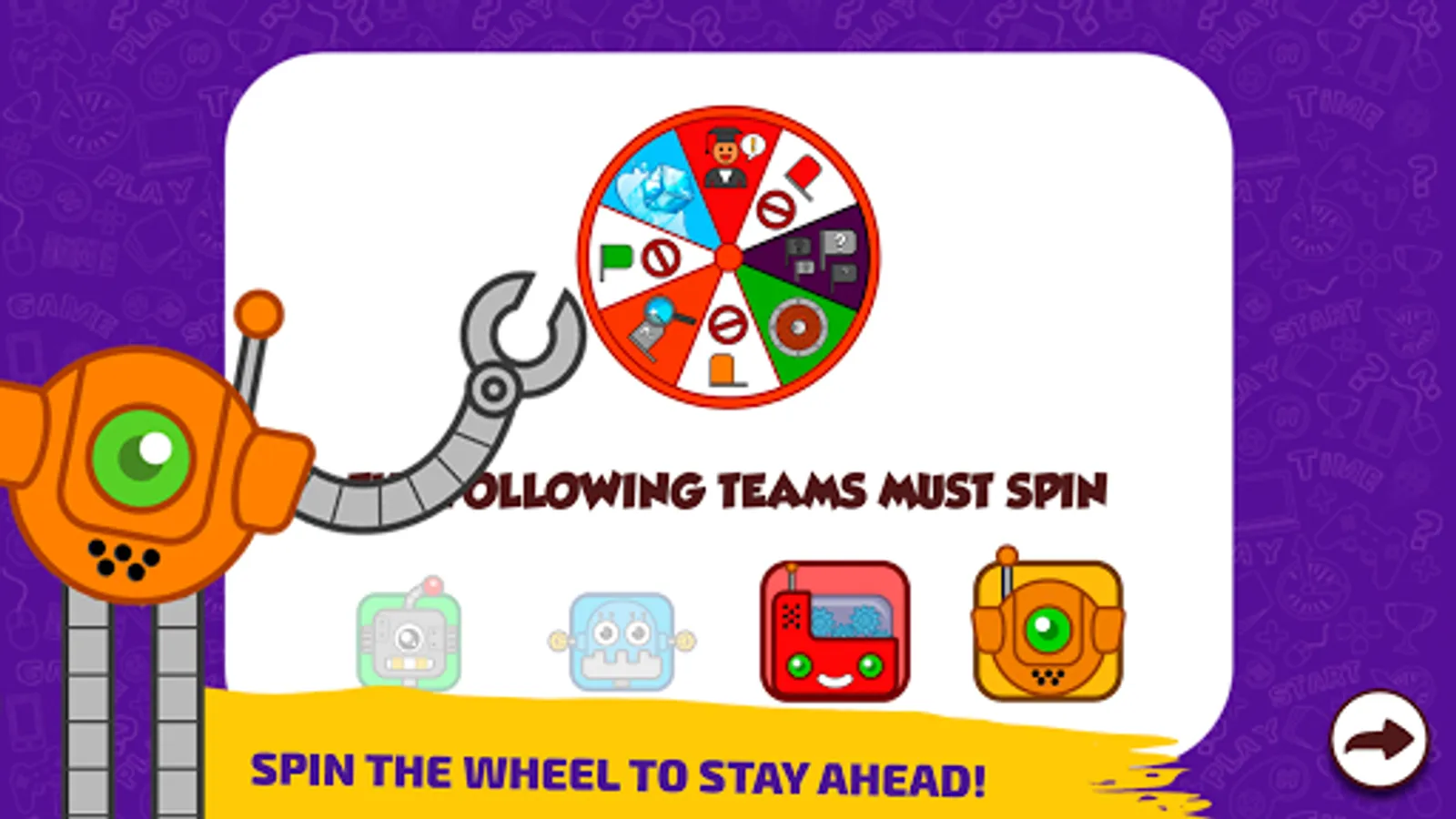 Groups score a point for each correct answer. For every two consecutive correct answers, groups own the right to spin the Crazy Roulette - which may yield positive or negative outcomes to the group.