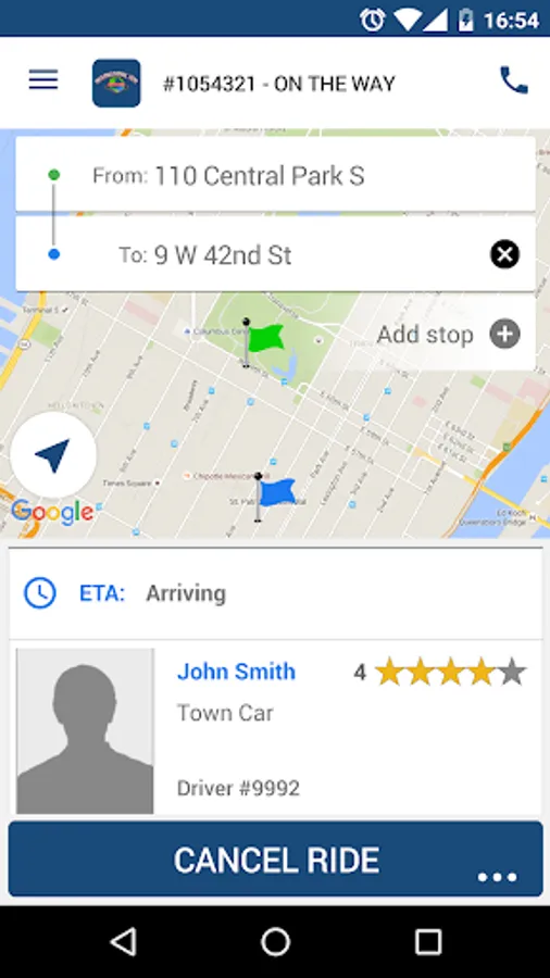 • Driver location and ETA