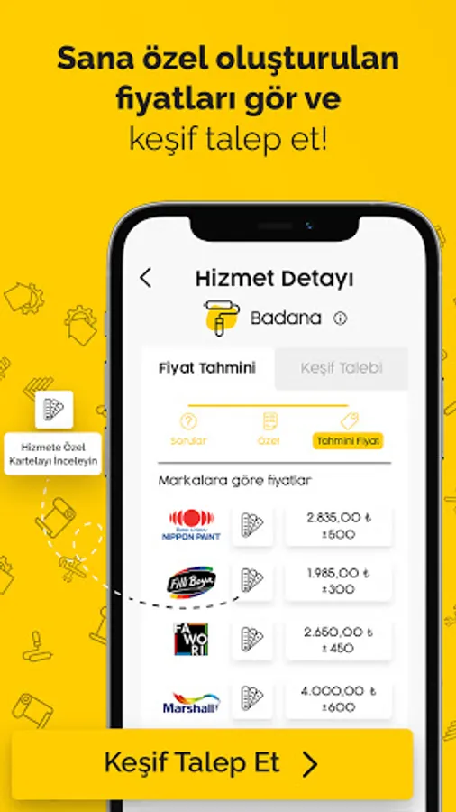 siz farklı ustalardan farklı teklifler aldığınızda hangisi iyiydi, ucuz olan gerçekten istediğimiz gibi güzel yapabilecek mi gibi soru işaretleri arasında kalmazsınız.Başvuran her usta MEKAN FiX programına kabul ediliyor mu?Hayır. MEKAN FiX usta programı sağlanacak iş standardını sağlayacak ustalardan oluşan bir havuz kurmak için hazırlanmıştır. Bu programın iletişim, giyim, temizlik, yapılacak işin asgari standardı gibi bir çok içeriği var. Yalnızca bu programdan başarı ile geçmiş ustalar MEKAN FiX müşterileri için hizmet sağlayabilir.Hangi markalar ile çalışıyorsunuz?Çalıştığımız markaları uygulamamız içerisinde her hizmet türüne girdiğinizde fiyat tahmini hesaplama modülü sonunda göreceksiniz. Boya, Parke, Duvar Kağıdı gibi her iş türü için en az 3-4 marka belirledik. Göreceksiniz, genellikle de en popüler markaları seçmeye çalıştık. Sizin çalıştığınız markalar dışında bir ürünün uygulanmasını istersek?Keşif personelimizin yanında sıklıkla çalıştığımız markaların kartela ve numuneleri olacaktır. Ancak her üründe marka çeşitliliği o kadar fazla ki, siz başka bir markada bir renk veya model beğenmişolabilirsiniz. Bu durumda biz keşfi yaparken siz bize beğendiğiniz ürünün kodu, ismi gibi tanımlayıcı bilgilerini sağlarsanız, kısa bir araştırma sonucu o ürünün uygulanması için de teklif sağlayabiliriz.Peki ürünleri kim tedarik edecek?MEKAN FiX uygulamada yer alan hizmet kategorilerinde size malzeme ve işçilik dahil olarak teklif verir. Malzeme tedariğini işin türüne göre kendi de yapabilir, ustaya da yaptırabilir. Ama siz merak etmeyin, siz bunu farketmezsiniz bile. İşin yapılacağı gün usta adrese tüm malzemeler ile birlikte gelecektir. Peki ya usta işi yaparken ek bir malzeme veya işçilik ihtiyacı ortaya çıkarsa?Tadilat işlerinde bu çok olağan bir durum. Ama önce sizi korumak için ek ihtiyaçtan emin olalım. Usta işi yaparken ek bir malzeme veya işçilik gerektiğini söylerse bunu bize iletecektir. Ama teyid için siz her zaman bize mesajlarım üzerinden de yazabilirsiniz.