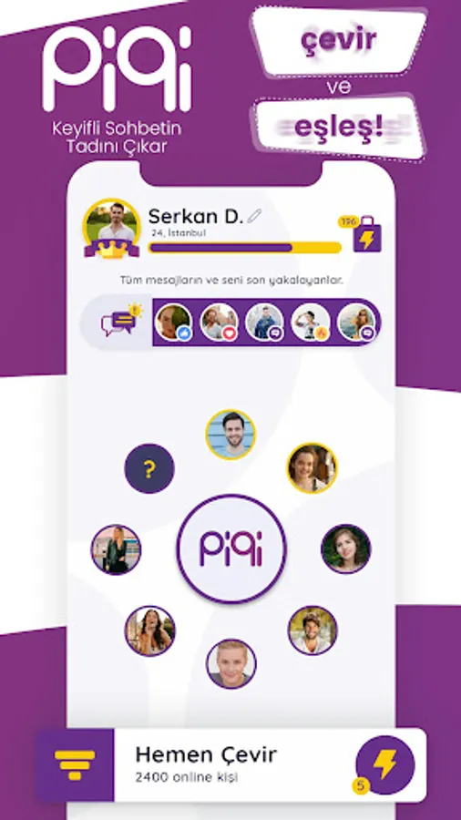 Piqi’de sadece gerçek kullanıcılar yer alır. Piqi, arama kriterlerinize göre size en uygun kişileri bulur ve çarkı çevirdikten sonra eşleşmeyi başlatır. Eşleşme başlatıldığında sizi cinsiyet, yaş, ilgi alanlarınız ve konumunuza göre en uygun kişilerle bir araya getirir.