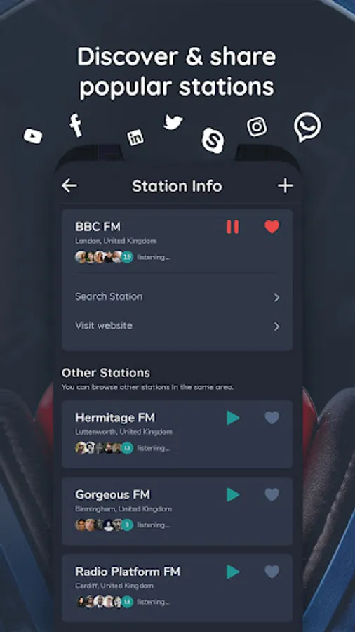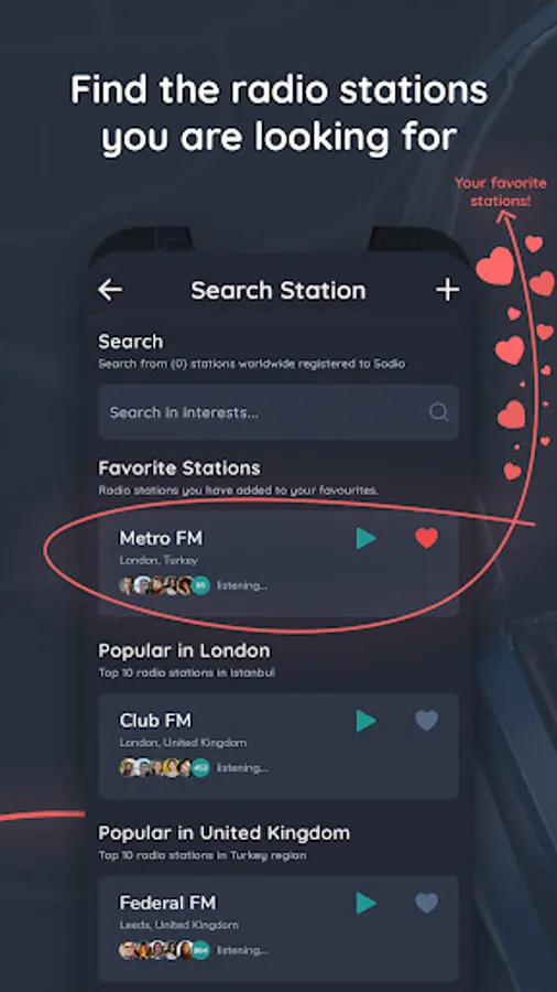 Sodio enables its users to listen to over 35 thousand radio stations worldwide. It is also an enjoyable application that offers the opportunity to meet and chat with people listening to the same stations. Sodio offers its users the opportunity to discover new music, new cultures and meet new people from around the world. Users can instantly join any radio station in the world by easily navigating the map via Sodio. Each of the blue dots on the map represents a radio station. By simply swiping and navigating, you can join the station in the region you want and start listening. You can create your favourite station lists by clicking the like button. At the same time, you can share the radio station you are listening to on social media or with your friends.