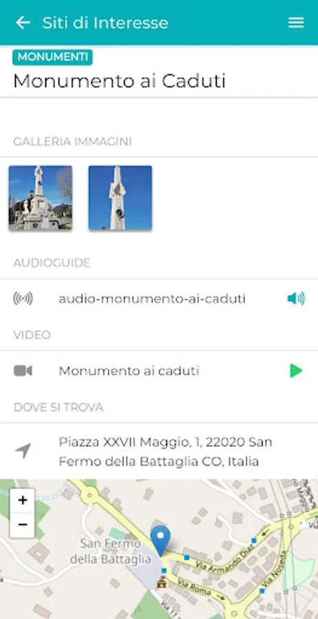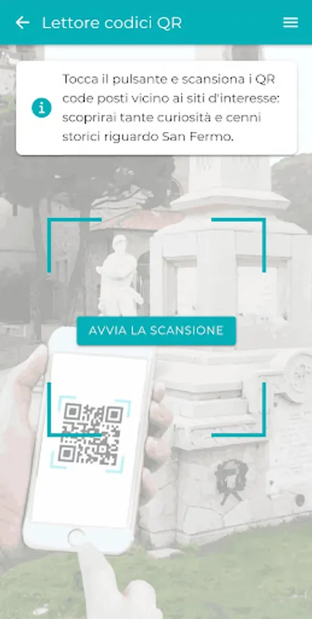 By reading the QRcodes placed in the sites of interest with the reader in the APP, the user accesses unique contents: curiosities and historical notes concerning San Fermo and the place where it is located.
