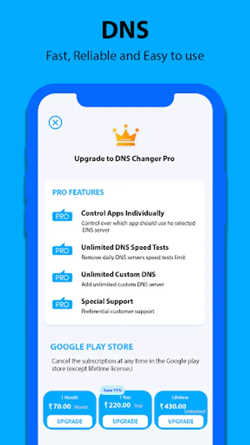 Features -Just one touch to find & connect fastest DNS server to optimize your connection. -Scan manually all DNS servers with one touch to see all details yourself. -Works for both mobile data (3G/4G/5G) and WiFi connection -Supported DNS Servers: Cloudflare, Level3, Verisign, Google, DNS Watch, Comodo Secure, OpenDNS, SafeDNS, OpenNIC, SmartViper, Dyn, Alternate DNS, Yandex DNS, UncensoredDNS, puntCAT