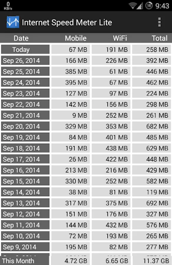 Internet Speed Meter Lite displays your internet speed in status bar and shows the amount of data used in the notification pane. This helps you to monitor network connection anytime while using your device.