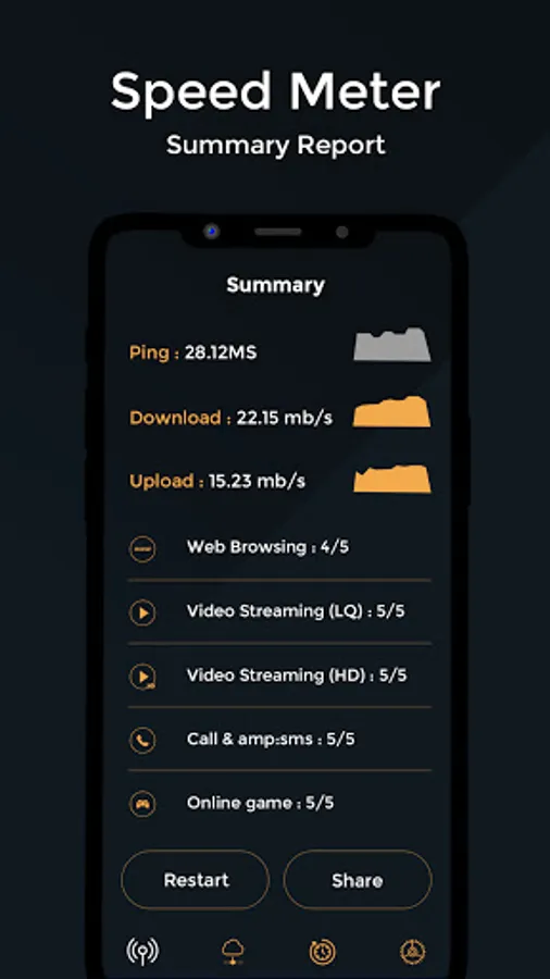 ► Speed Test for Mobile helps to measure and verify the download speed and upload speed in a short span of time.