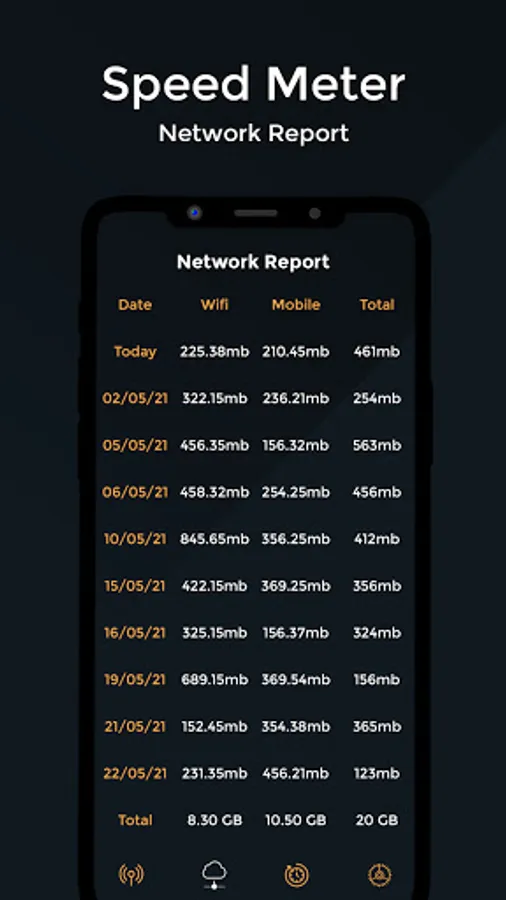 This Internet Speed Meter & Speed Test The Use Of Internet And Wi-Fi Daily-used Data Report And Show Date In Right-side