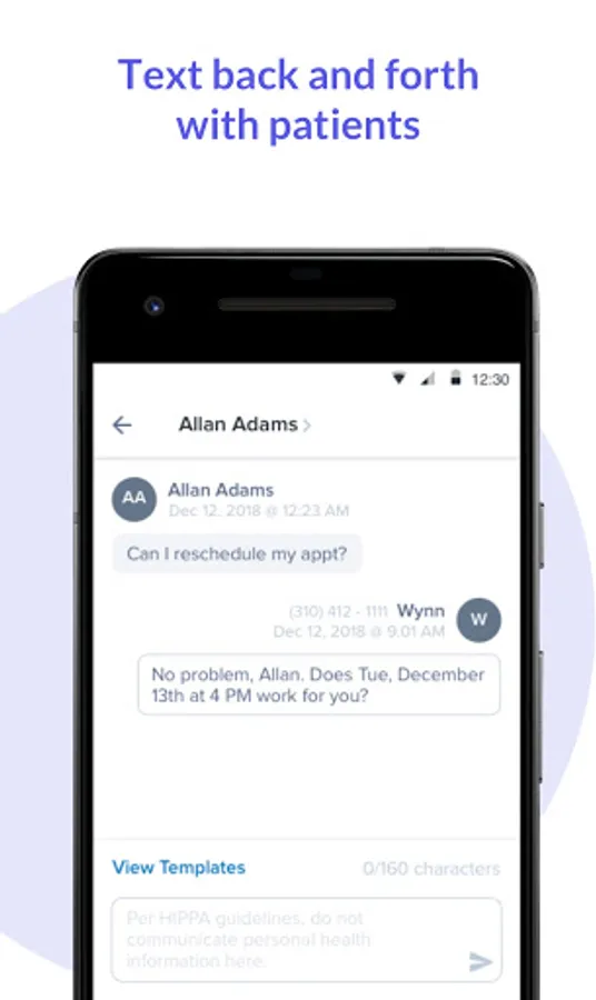 - Send important updates to patients with HIPAA-compliant secure messaging