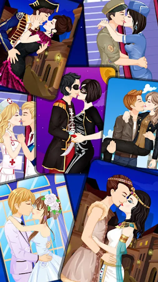 ⍟ 18 Different Kissing Games to choose from which include Matador & Senorita, Pilot & Air hostess, Office, Halloween, Wedding, Superhero, Doctor & Nurse, In His Arms, Warrior, Cleopatra, Mermaid, Beach, Royal, In the Rain, Park Romance, Wedding Kiss and College Couple