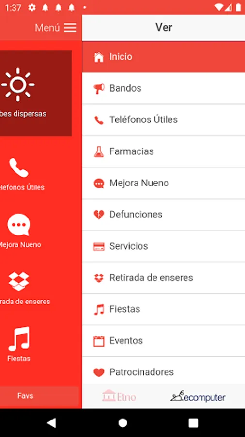 The Etno de Alfajarín app is the official application of the Town Hall. It offers current information on everything that happens in the town such as events, informative parties, the complete program of the festivals, useful phone books, geolocated pharmacies, tourist spots ... It is a free application, Enjoy it!